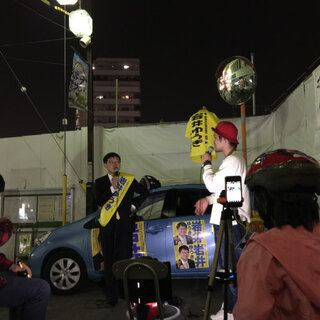 選挙戦もこの日を含めてあと3日、この日は政治活動期間中に貼っていた2連ポスターの塩村あやか都議が応援演説してくれる予定だったので、気合いが入った。北沢地域のオオゼキ巡りの1日。